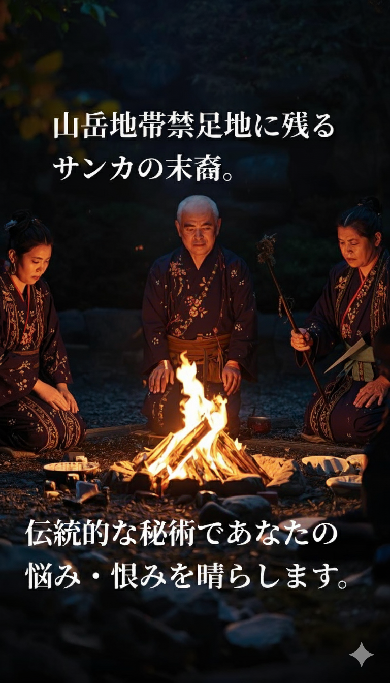 当協会は伝統的なサンカの巫術の力で恨む相手を陥れるので、「合法的に恨む相手に天罰を与える」ことができる唯一無二の方法です。